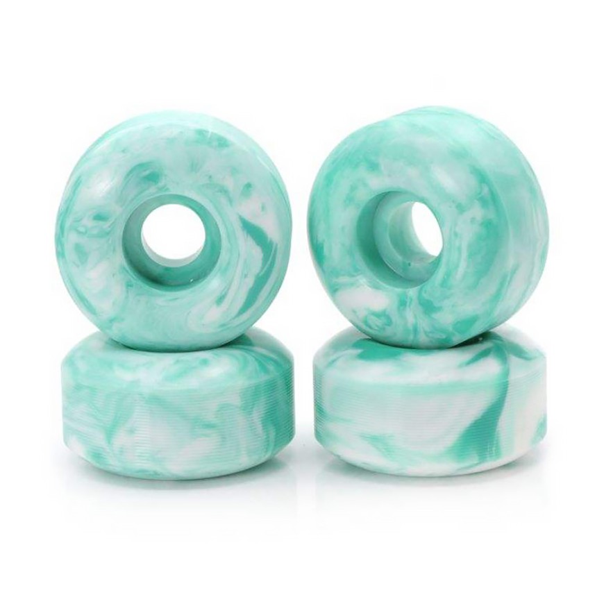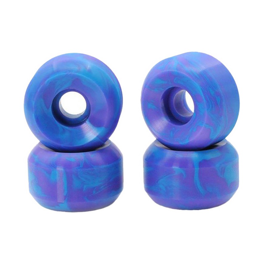 These portable skateboard wheels are made of durable PU (polyurethane) material and feature a multi-color mixed design, balancing practicality and fun. The lightweight design makes them easy to carry and replace, suitable for beginners and casual skating, providing a smooth rolling experience.